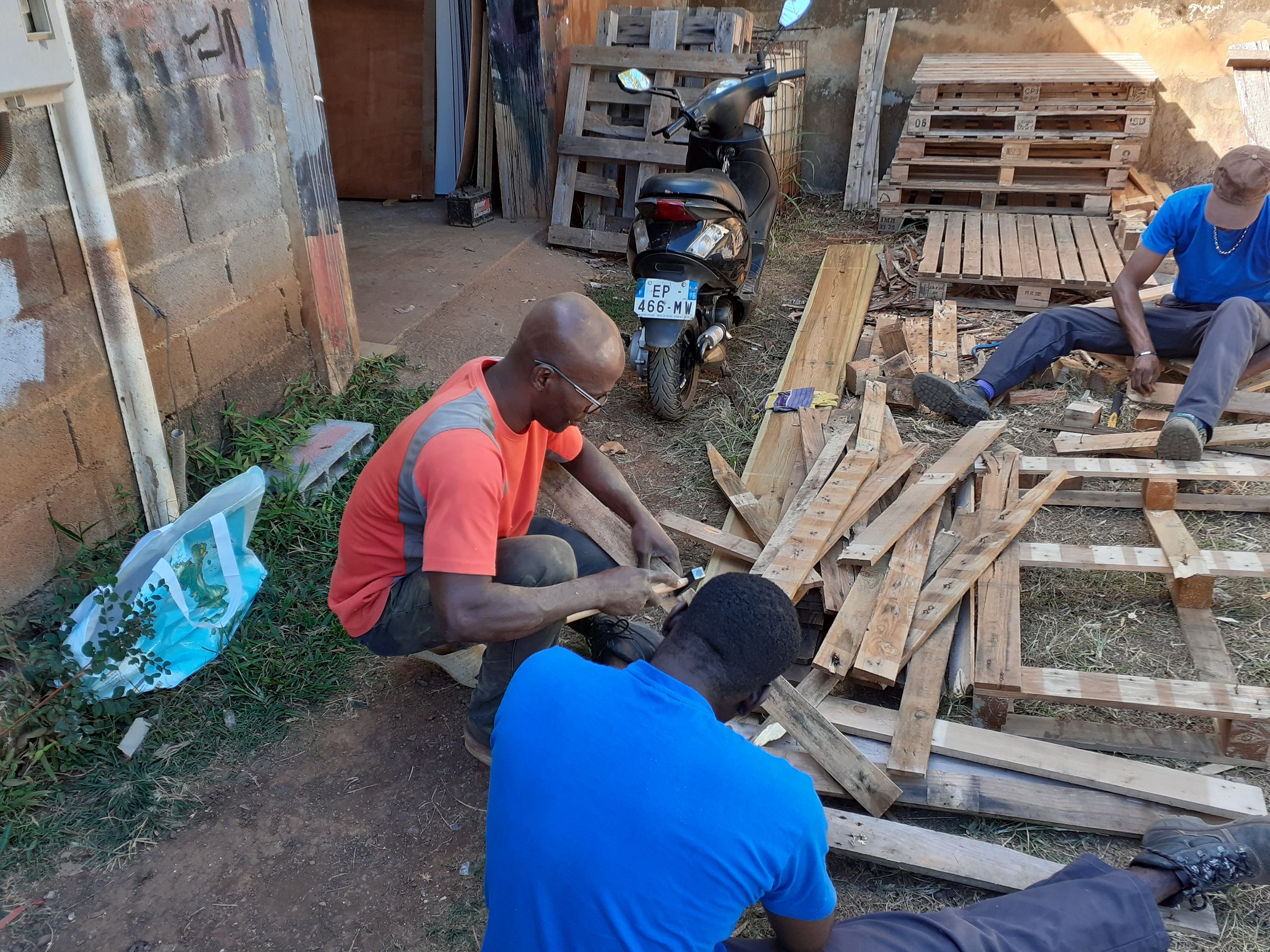 Durant la fabrication des meubles en palette, une expérience riche et donneuse d’espoir pour les jeunes.